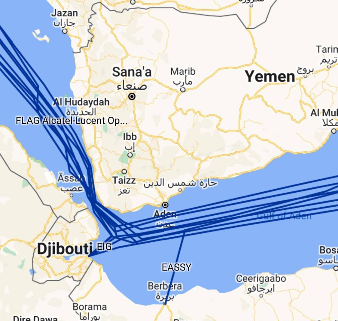 26 февраля израильская газета Globes сообщила, что четыре подводных кабеля связи были повреждены хуситами в Красном море между Джиддой в Саудовской Аравии и Джибути в Восточной Африке. Речь шла о кабелях компаний Seacom, TGN, AAE-1 и EIG.