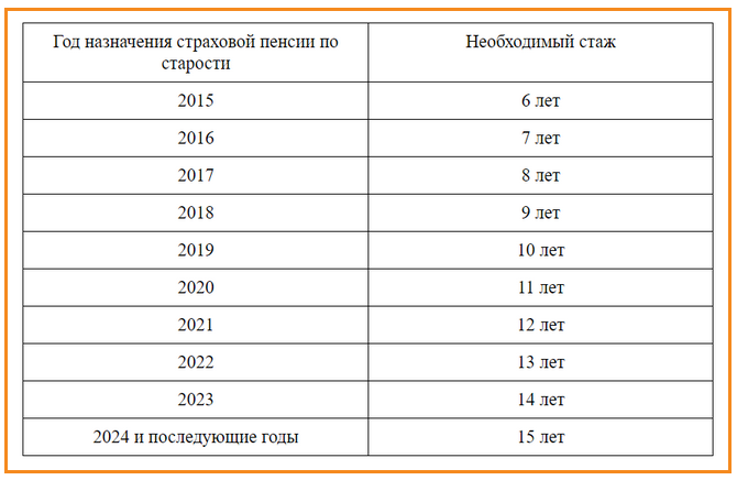 Для назначения пенсии по старости в 2024 году требуется страховой стаж не менее 15 лет и не менее 28,2 пенсионных коэффициентов. Таким образом, минимальный размер страховой пенсии по старости для тех, кто выйдет на пенсию в 2024 году, составит: (133,05 ? 28,2) + 8134,88 =11 886,89 рубля.