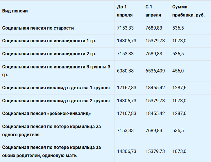 Размер социальной пенсии по старости с 1 апреля 2024 года составляет 7 689,83 руб. 18 янв. 2023 г.