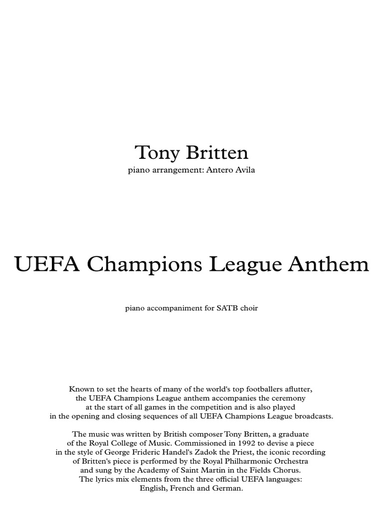 Uefa champions league anthem- lyrics uefa champions league uefa champions league anthem lyrics. Канал: Fabrice Hafashimana - Дата: 24.10.2024