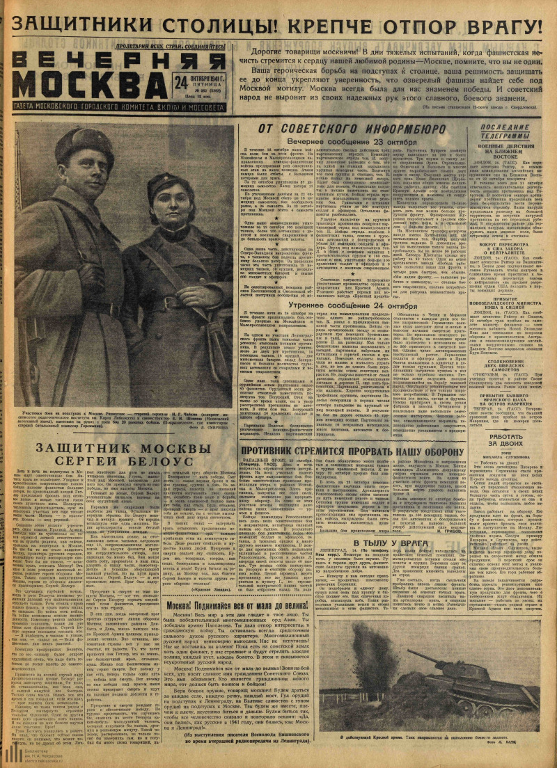 Ожесточённые сражения на дорогах к Москве Известия от 24 октября 1941 года