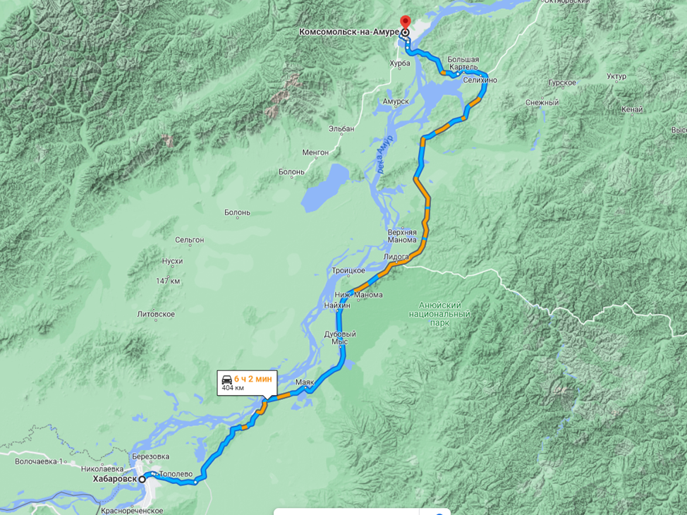 Город Комсомольск-на-Амуре расположен в 348 км к северо-востоку от города Хабаровска на пересечении транспортных путей: в западном направлении – Байкало-Амурская Магистраль, северо-восточном - водный путь по реке Амур до г. Николаевска-на-Амуре и далее в Охотское море, газо- и нефтепроводы с о.