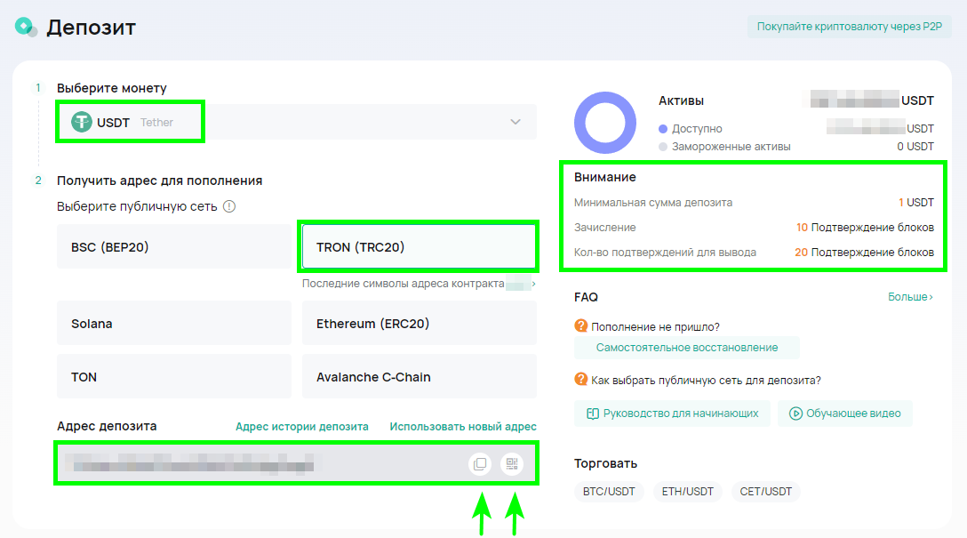 Как вносить депозит и выводить средства на COINEX