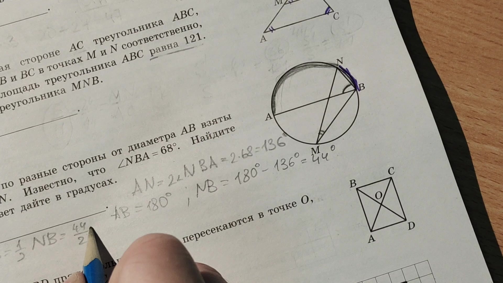 Быстрый разбор задания по геом На окружности по разные стороны от диаметра AB взяты точки M и N.