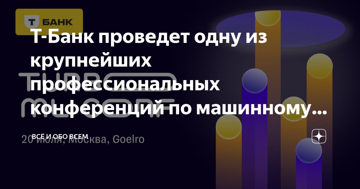 Это была наша первая ML-конфа, и прошла она в режиме турбо! n nЧто было внутри: n n четыре потока NLP u0026 MLOps/LLMOps, Research u0026 RnD, CV u0026 Speech и RecSys u0026 TS n n кейсы лидеров индустрии заглянем в самое сердце AI- продуктов Т-Банка, VK, Яндекса, MTS AI, AIRI, Lamoda и других бигтехов n n афтепати, нетворкинг и уникальные челленджи, чтобы проверить свои скиллы на деле. n nВ общем все, чтобы и время с пользой провести, и с комьюнити познакомиться, оторваться и отлететь в ML-стратосферу. n nВсем турбо! n n#turbo ml conf #ml #тбанк n nНаш телеграм: