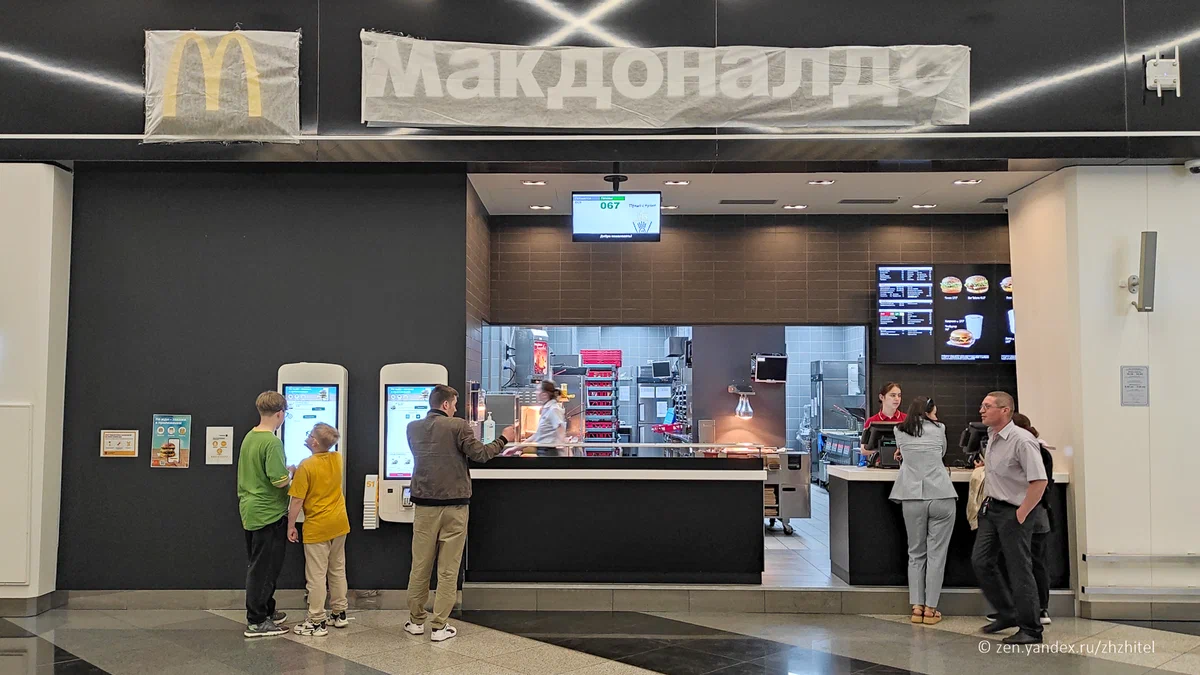 Макдональдс в Шереметьево в самом дальнем углу .