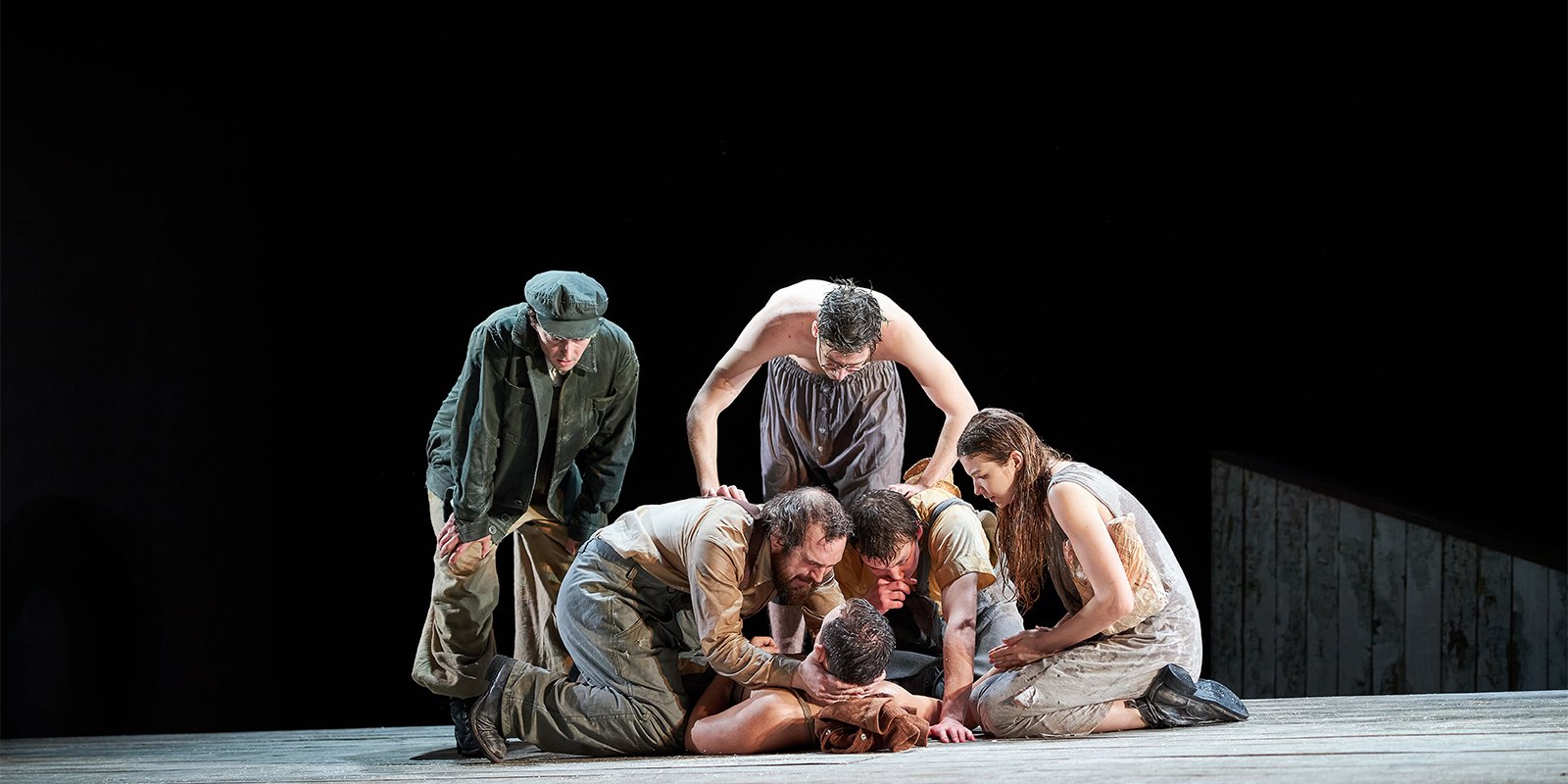 Театралы, безусловно, помнят постановку режиссера Миндаугаса Карбаускиса Когда я умирала по одноименному роману Уильяма Фолкнера с актерами Табакерки. Эта был выдающийся спектакль, принесший режиссеру две Золотые маски . И вот , ровно 15 лет спустя , Карбаускис - будучи уже художественным руководителем театра Маяковского - возвращается к этому очень непростому, но абсолютно гениальному тексту, оказавшему огромное влияние на всю американскую литературу XX века. На этот раз постановка называется Йокнапатофа . Именно такое имя носит вымышленный округ на юге США, в котором разворачиваются события большинства произведений Уильяма Фолкнера ( в том числе и в романе Когда я умирала ). Это только считается , что в одну реку не входят дважды. Наверное, это все-таки зависит о того, кто входит. Карбаускис и Фолкнер как будто созданы друг для друга. Режиссер подробно, глубоко, мудро, но при этом невероятно легко, свободно, с юмором всматривается в каждого из героев романа. В центре сюжета семья фермеров, у которой случилось горе: на их глазах умирает мать семейства Адди. Эта история о смерти, о том, как ее воспринимают разные люди, о ее преодолении, любви и жертве ради другого. И еще! Самое удивительное, возможно, в новом спектакле Маяковки: это его актерский состав, который практически весь состоит из студентов третьего курса Мастерской Карбаускиса в ГИТИСе. Именно этот факт делает постановку не версией старого спектакля, а абсолютно новым авторским высказыванием. Ведь благодаря молодости и драйву актеров, действие, в котором главным действующим лицом является смерть, поражает зрителя своей парадоксальной витальностью.