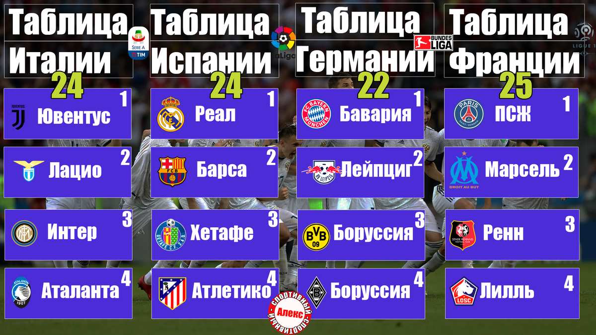 ТАБЛИЦА ПОЗИЦИИ Бундеслиги 2024/2025 4-Й ТУР