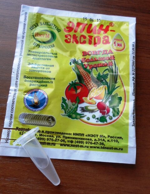 1 мл Эпина экстра разводят в 5 литрах воды, и тщательно перемешивают. Либо разводят 8 капель на 1 литр воды. Опрыскивание производят равномерно смачивая листья, так как эпин не усваивается через корни, то им лишь опрыскивают, при этом равномерно смачивают все части растения (листья, побеги).