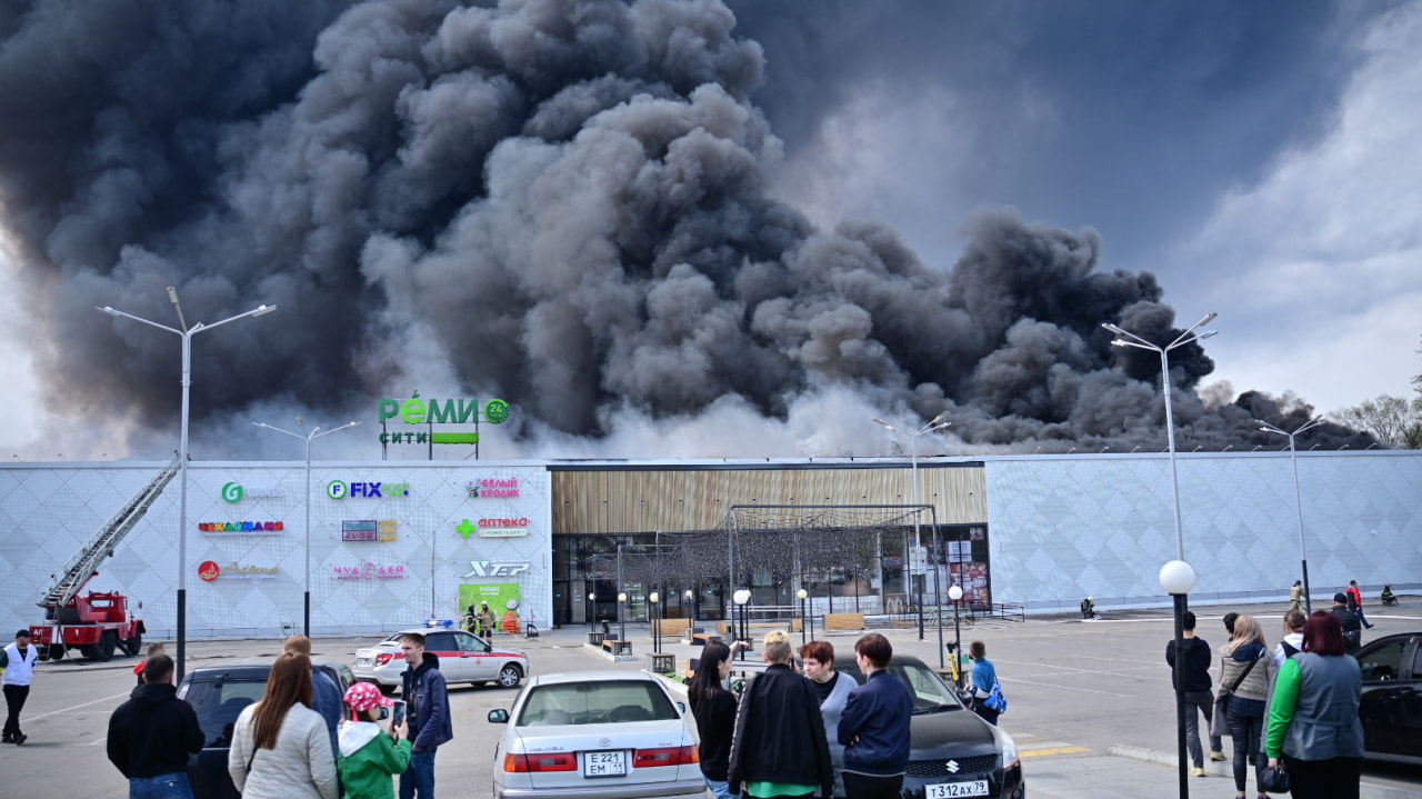Пожар в Хабаровске горел популярный торговый центр Новости 06 05 2024 GuberniaTV