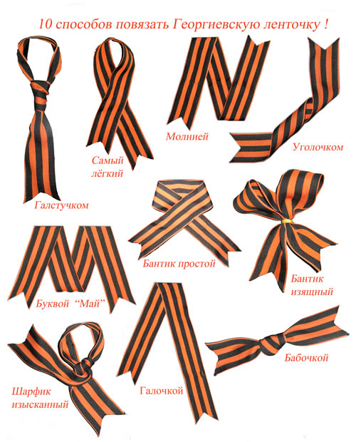 Как можно завязывать Георгиевскую ленточку?