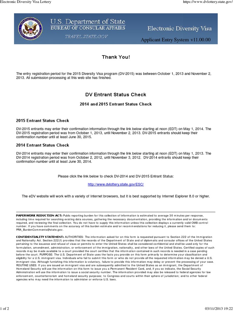 Entrant Status Check - DV Lottery 2020