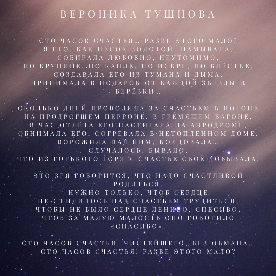 Получилось десять имен и десять текстов. Александр Твардовский «Две строчки» (1943) Ион Деген «Мой товарищ, в смертельной агонии… ... Верника Тушнова «Ночная тревога» (1945) Евгений Винокуров «Москвичи» (1953) Александр Межиров «Воспоминание о пехоте» (1954) Борис Слуцкий «Ко мне на койку сел сержант-казах…