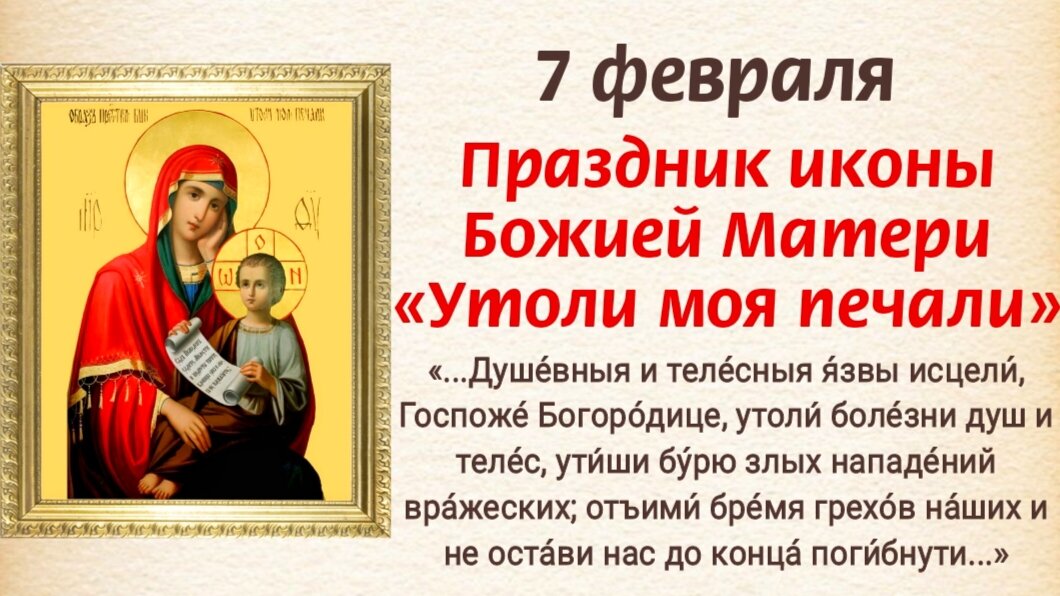 7 февраля 2023 православный праздник - день иконы Божией Матери Утоли моя печали