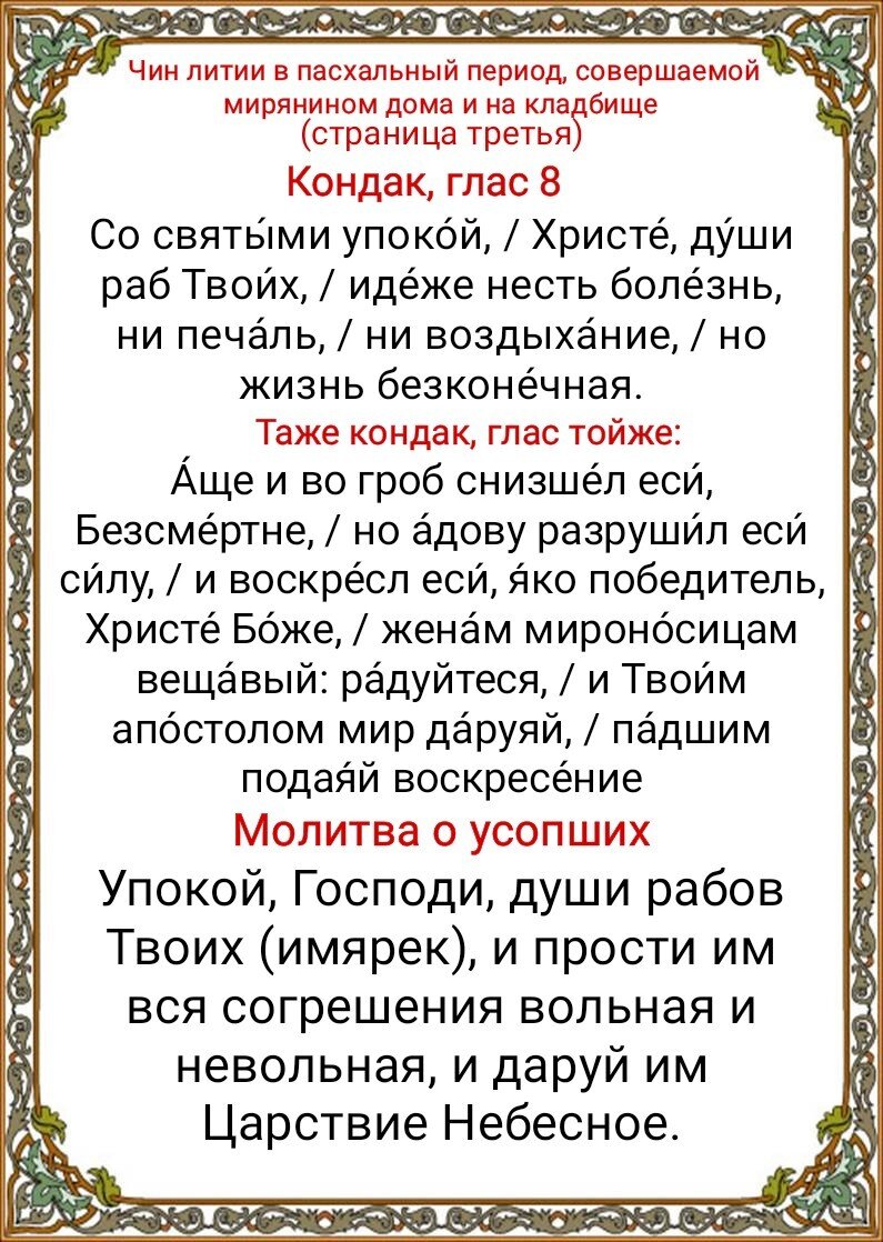 РАДОНИЦА - День поминания усопших Молитвы за усопших лития для чтения мирянам онлайн читать слушать