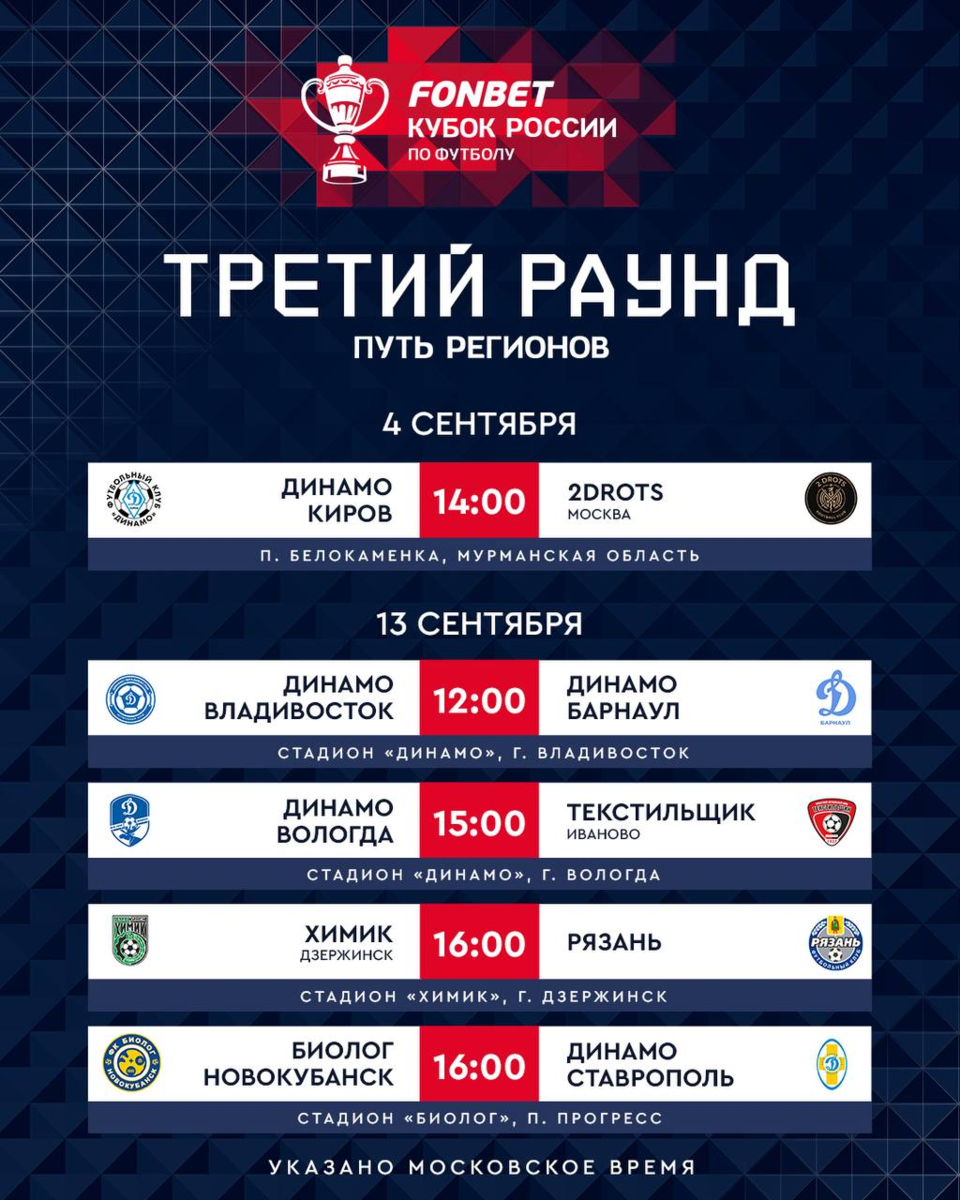 Когда 3 раунд Кубка России?