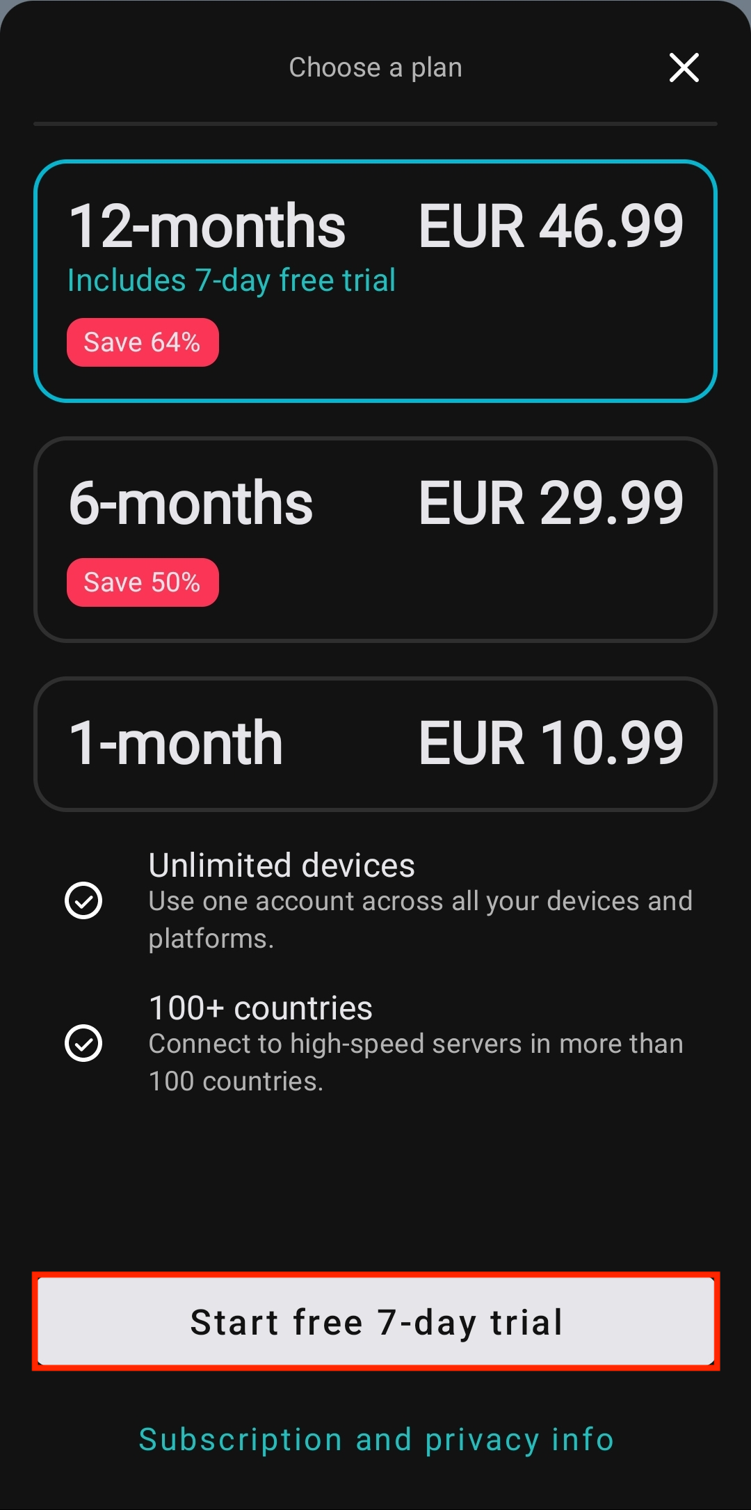 You can get a 7-day free trial when buying a subscription on the Google Play Store or the Apple App Store. Alternatively, you can purchase a subscription through our website which comes with a 30-day money-back guarantee.