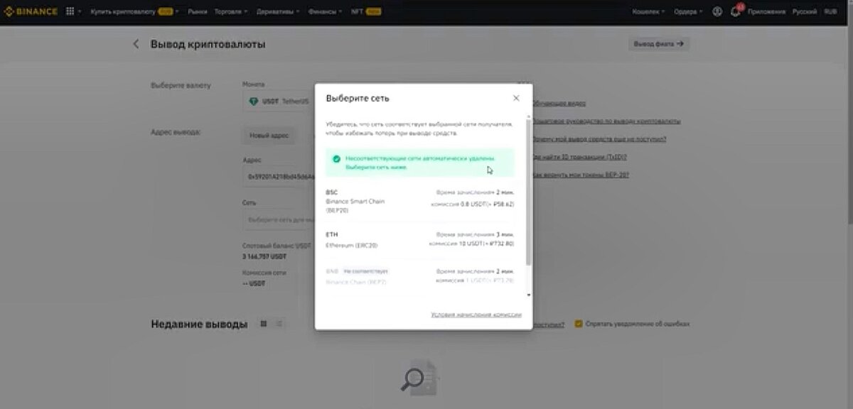Как на Бинансе перевести USDT на другой кошелек?