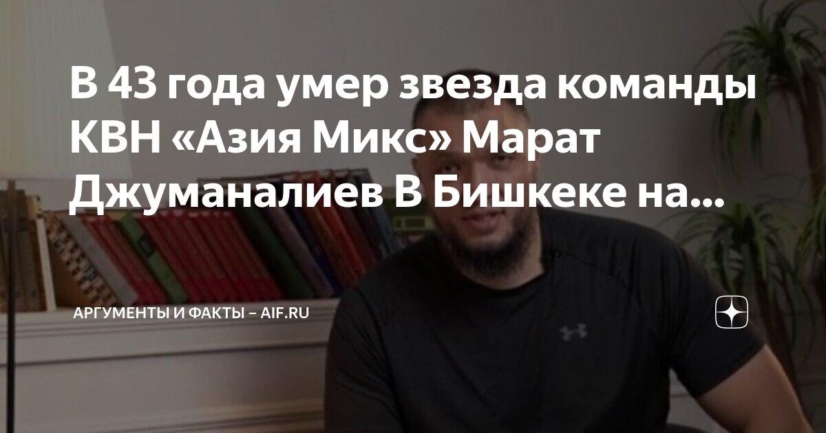 Ему было 43 года. Россияне больше знали его как «Маратика из «Азии». Sputnik Кыргызстан сообщает, что чемпион КВН умер в своем доме в Бишкеке, смерть наступила в результате несчастного случая. По данным ТАСС, Марат Джуманалиев упал и получил смертельную травму головы.