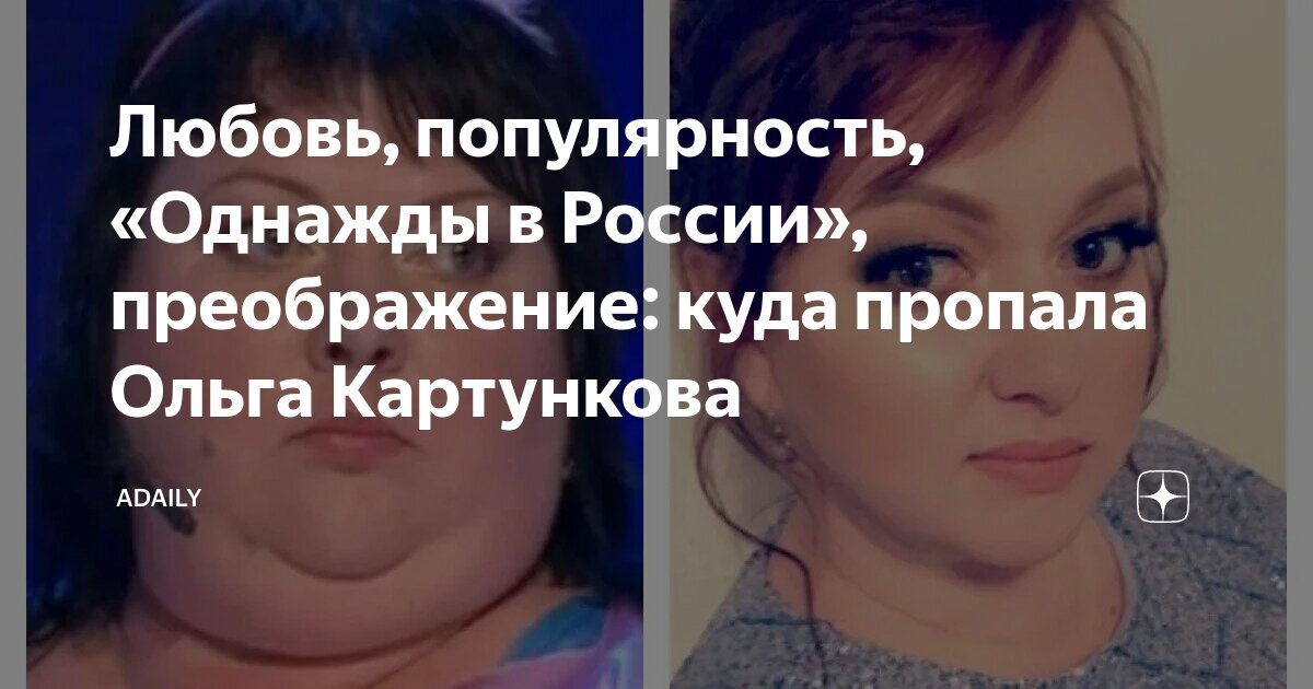 Звезда шоу «Однажды в России» была капитаном команды КВН «ГородЪ ПятигорскЪ». Артистка с объемными формами не стеснялась шутить над собой и своим весом. Травма ноги заставила Ольгу изменить образ жизни и начать худеть. Картункова сбросила более 80 килограммов благодаря строгой диете и спорту.