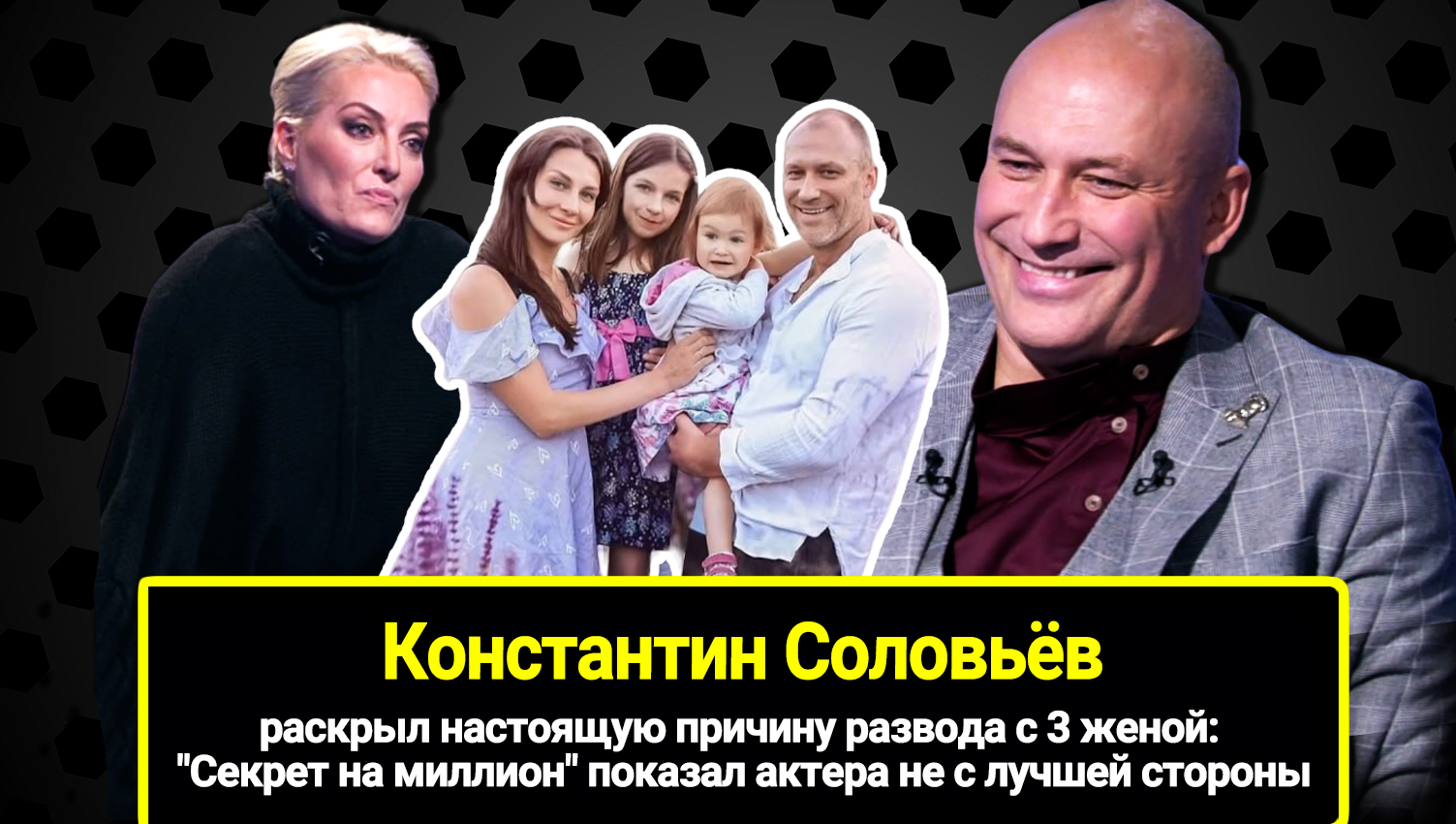 7 октября в 21:20 гостем шоу Секрет на миллион станет Константин Соловьёв. n nЗвезда российских фильмов и сериалов сделает откровенное признание: его третий брак распался. Актёр объяснит, почему снова потерпел фиаско в личных отношениях, расскажет, как планирует общаться с детьми, а также признается, свободно ли сейчас его сердце. n nМатериалы предоставлены телеканалом НТВ