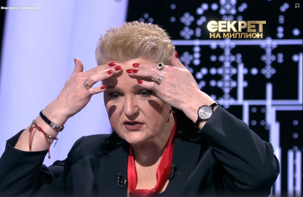 17 февраля в 21:20 гостьей нового выпуска ток-шоу Секрет на миллион на НТВ станет заслуженная артистка России Маргарита Суханкина. Солистка группы Мираж расскажет о том, почему винит себя в смерти родителей, из-за чего навсегда поссорилась с родным братом и как справляется с переходным возрастом приёмных детей. n nМатериалы предоставлены телеканалом НТВ