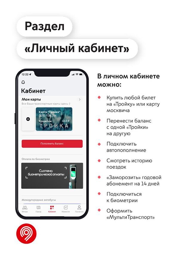 Привяжите Тройку в личном кабинете приложения Метро Москвы