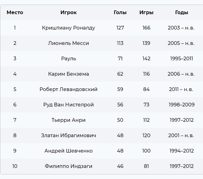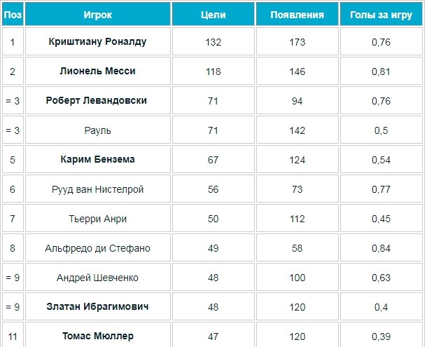 Кто забил больше голов в Лиге чемпионов за всю историю?