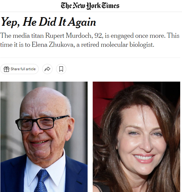 Это семейное: бывшая теща Абрамовича встречается с 92-летним миллиардером Рупертом Мердоком