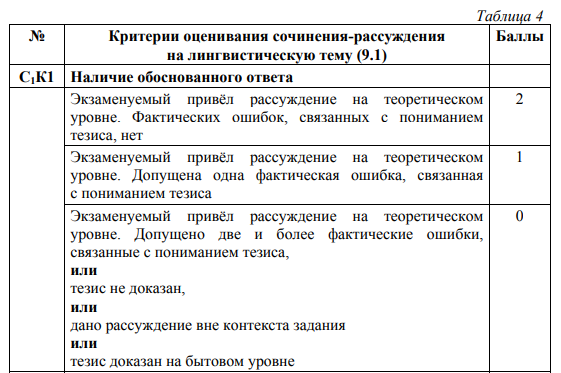 Особенности оценивания сочинения