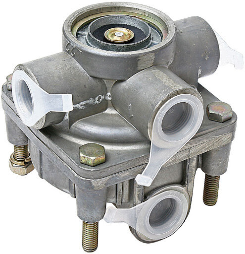Кран стояночного тормоза монтируется на приборной панели автомобиля или на полу кабины рядом с водительским сиденьем (по правую руку), он подключается к пневмосистеме тремя или четырьмя трубопроводами.