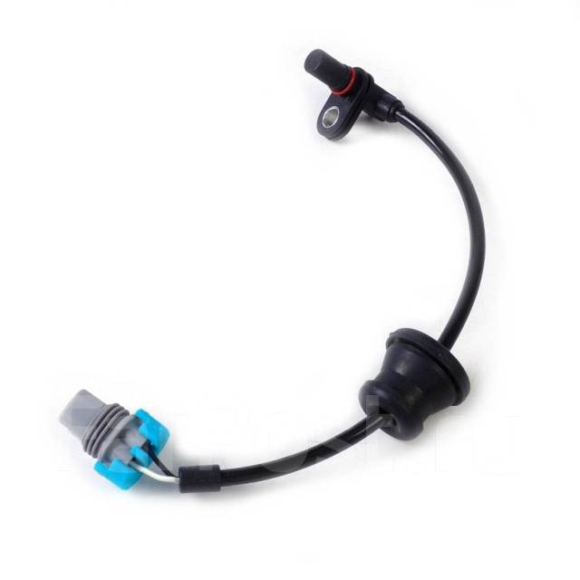 Датчик содержит обмотку, которая установлена вокруг магнитного сердечника, и постоянный магнит. При вращении зубья шестерни создают магнитное поле, частота которого определяет скорость вращения колеса.