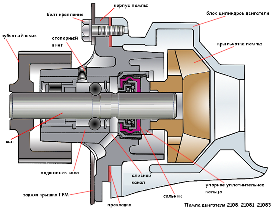 Водяной насос можно отремонтировать, спрессовав крыльчатку, шкив, вывернув стопорный болт подшипника. Чаще всего меняется подшипник и сальник. Но, проще сэкономить время и трудозатраты, и заменить неисправную помпу целиком, так как стоит она не так дорого.