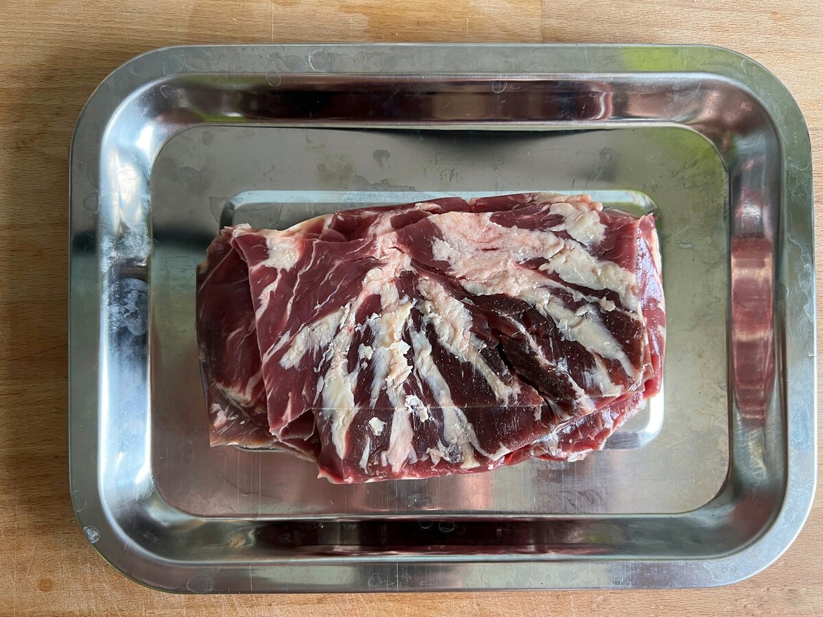 Стейк Паук или как его еще называют Аринье. Очень редкий стейк, так как в бычке их всего два и извлечь его из тазобедренного сустава не повредив очень сложно. Свое название стейк получил благодаря своей жировой сетке, напоминающей паутину. Эта мышца практически не нагружается, поэтому стейк получается очень нежным.