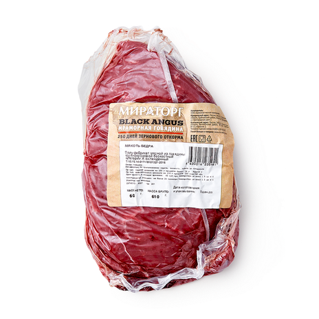 Мякоть бедра – пожалуй, универсальная часть говядины для приготовления любых вторых блюд и супов. Благодаря тому, что используется мраморная говядина, блюда получаются значительно вкуснее, чем из обычной говядины. Плотное не жидкое мясо.