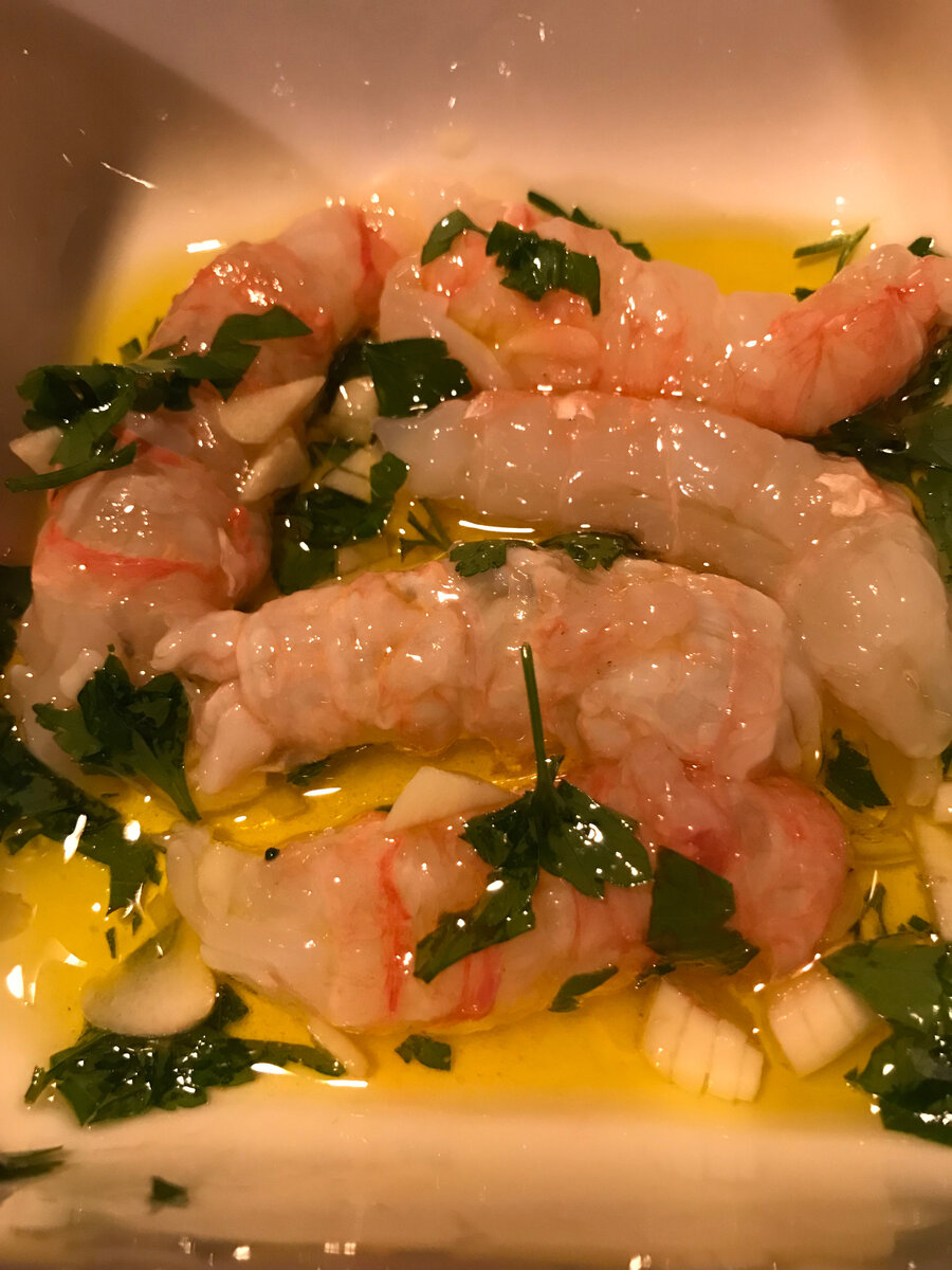 У лангустина мясо более нежное и сладковатое, в то время как у креветки мясо более грубое и волокнистое. В нашем меню есть очень вкусные блюда с лангустином!