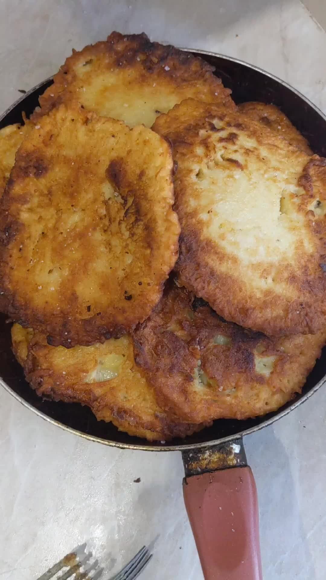 1 kg potatoes 1/2 large onion salt, pepper to taste vegetable oil for frying