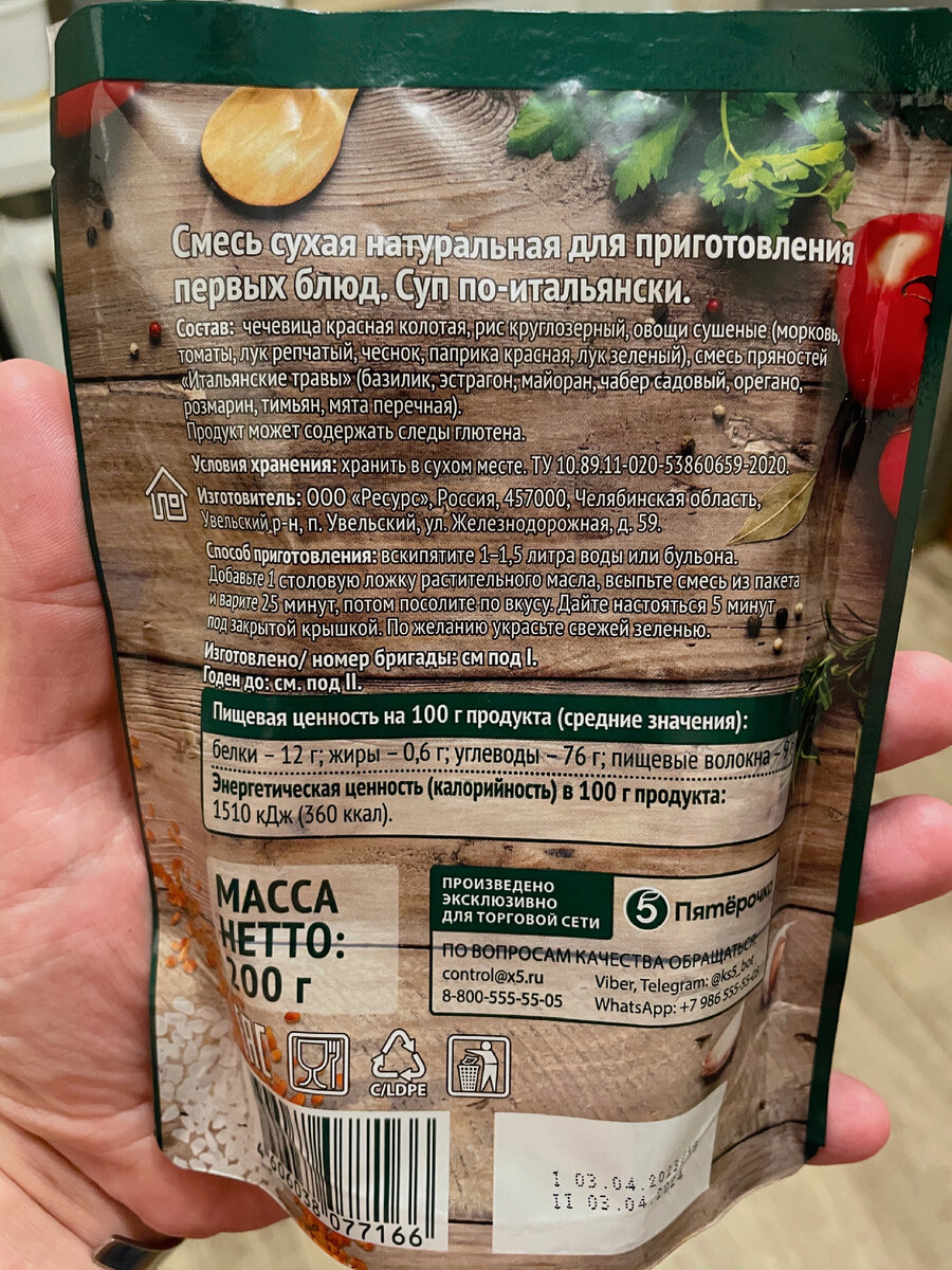 Суп по-итальянски на первое из Пятёрочки