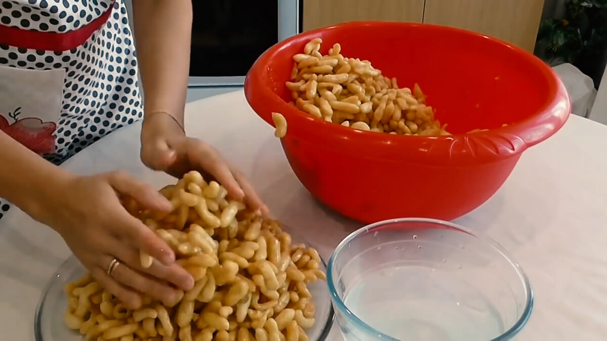 Он должен быть однородным, нельзя ни недодержать его на огне, ни передержать», — продолжала делиться она секретами. Если сироп недодержать — он не будет связывать частички лакомства, и чак-чак развалится. «Раньше чак-чак готовили на свадьбу. И если чак-чак разваливался, это была очень плохая примета.